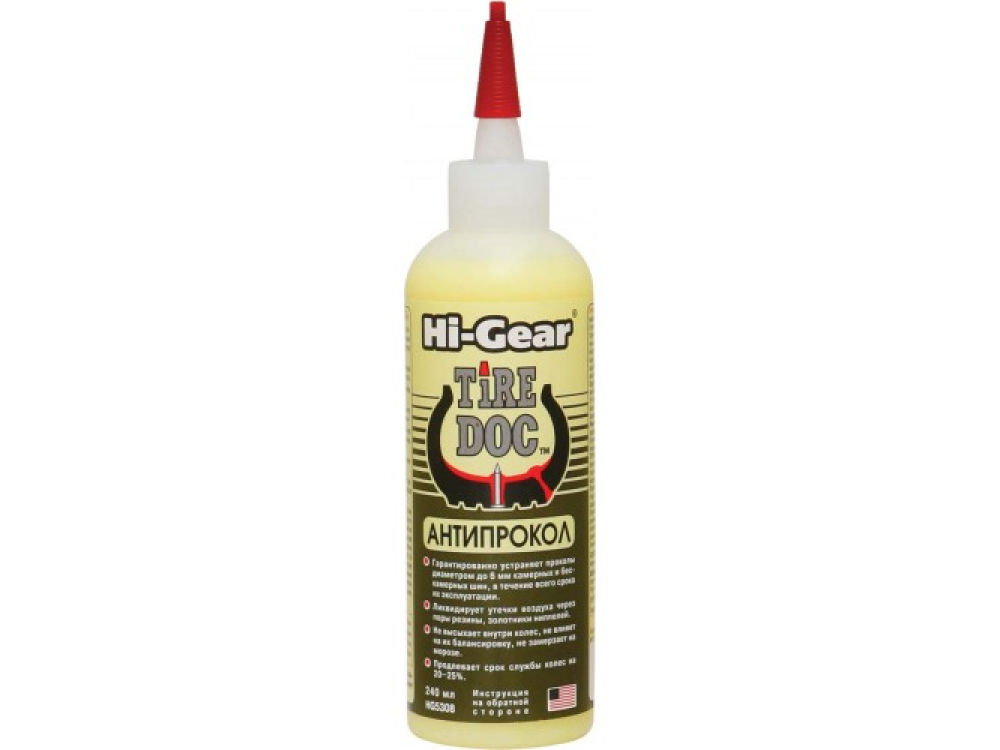 Tire Doc™ - новейшая разработка для превентивной защиты камерных и бескамерных шин от проколов и для аварийного ремонта спустивших колес. • Не скапливается внизу колеса при стоянке машины, не влияет на балансировку колес. • Сохраняет свои характеристики при любых погодных условиях. • Образует эластичную прочную пробку внутри прокола, аналогичную «сырой резине». • Содержит углеволокно, имеющее удельную прочность выше чем у стали и полимеры, используемые в бронежилетах. • Поглощает влагу, не высыхает внутри колеса и препятствует коррозии дисков. • Одна «заправка» навсегда устраняет десятки мелких проколов или 8-10 проколов диаметром 5-6 мм. При вращении колеса центробежная сила равномерно распределяет состав внутри покрышки. При проколе состав выдавливается давлением воздуха в отверстие и, благодаря волокнистой структуре, начинает мгновенно формировать прочную, эластичную пробку, За счет углеволокна пробка приобретает форму гриба - шляпкой внутрь покрышки. Давление внутри колеса прижимает и «приклеивает» пробку к внутренней поверхности покрышки, ликвидируя прокол.