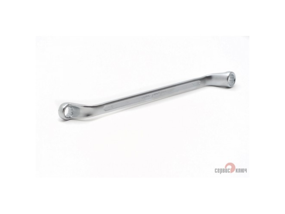 Двусторонний накидной ключ со смещением. Имеет на обоих концах 12-гранные накидные профили. Накидной профиль со смещением предоставляет более широкие возможности при работе в ограниченном пространстве. Изготовлен из высококачественной хромованадиевой (Crv) стали методом холодного штампа, тверность 40-45 HRC.