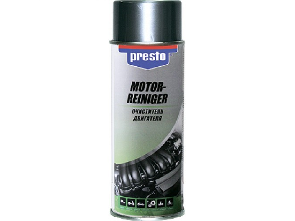 Эффективное средство для очистки холодного двигателя и его узлов от масла, смазочных материалов, грязи и других загрязнений. PRESTO Очиститель двигателя используется для всех типов двигателей. Быстро и легко смывается вместе с грязью водой. Безопасен для пластика и резины.