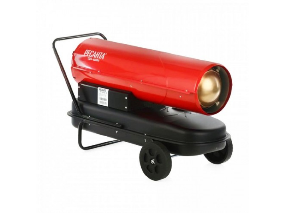 Дизельная тепловая пушка РЕСАНТА ТДП-50000 - функциональный обогреватель с прямым нагревом для отопления складских, строительных и других помещений.