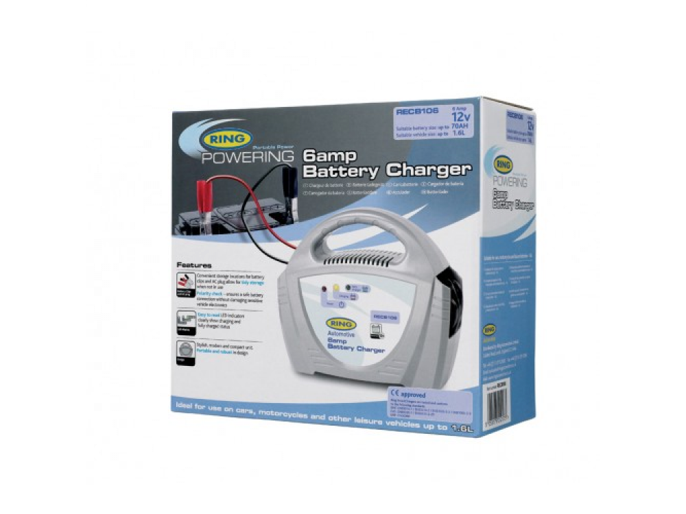 Легкое в использовании домашнее зарядное устройство на 12 В. Заряжает 12В свинцовые аккумуляторы в автомобилях до 1,6 л. Легко читаемые светодиодные индикаторы показывают состояние зарядного устройства. Проверка полярности обеспечивает безопасное подключение аккумулятора. Удобные места для хранения аккумуляторных зажимов и вилки переменного тока в корпусе.